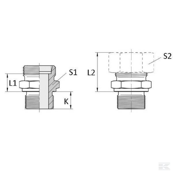 Technische Information Anschlussgewindetyp Nr. 2 Metrisch Oberflächenbehandlung Zinc Serie L ISO-Norm 228 DIN-Norm 2353 S1 Anschluss Schlüsselweite 14.0 mm Anschlussgewindetyp BSP Anschlussgewindedurchmesser M12 S2 Schlüsselweite Anschluss Nr. 2 14.0 mm Anschlussgewindesteigung 1.50 mm Anschlussgewindedurchmesser 1/8 Inch K Anschlussgewindelänge 8 mm L2 Connection center to end distance 23 mm L1 Connection no 2 center to end distance 8,5 mm Rohrdurchmesser 6 mm Max. Betriebsdruck 400 bar