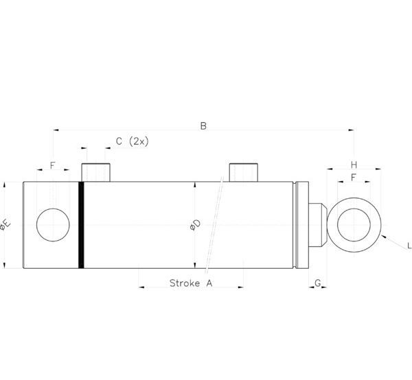 Max. Betriebsdruck (bar) 250Nenndruck (bar) 200Temperaturbereich (°C) -25 <> +85Kolbengeschwindigkeit (max.) (m/sec) 0,1Stangen Ø (mm) (mm) 40Ø Bohrung (mm) (mm) 70Hub A (mm) (mm) 400B (mm) (mm) 610C (BSP) 3/8"D (mm) (mm) 80E (mm) (mm) 80F (mm) (mm) 30,25G (mm) (mm) 46H (mm) (mm) 50L (mm) (mm) 55